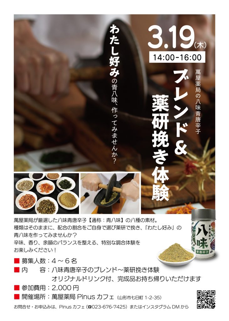 ■ 開催場所:萬屋薬局Pinusカフェ(山形市七日町1-2-35)